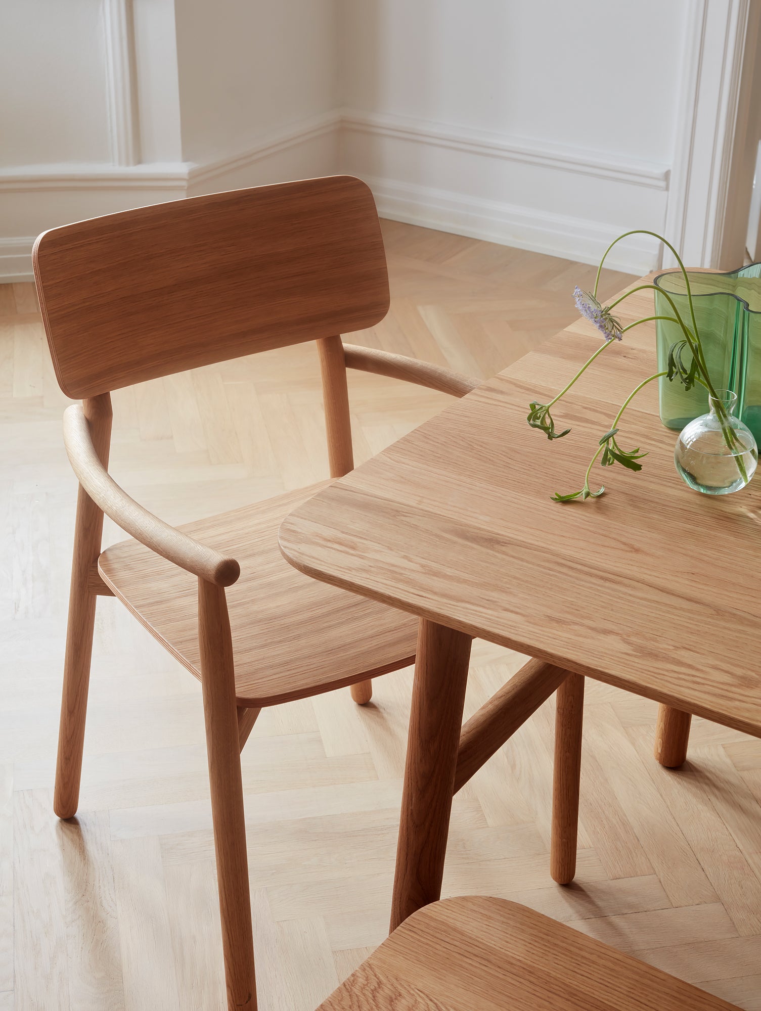 The Hven Armchair combines traditional woodworking skills with modern materials and minimal Scandinavian styling. A solid oak frame in a selection of finishes is paired with a moulded plywood seat and back to create a chair with comfort and poise. Subtle carpentry details like soft rounded edges, tapers and steam-bent sections add both weight and lightness to Hven in a well-balanced composition.